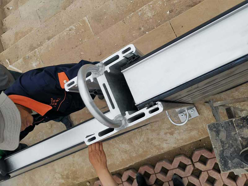 The material of the side pillars is 6063 series aluminum alloy, which is sent to the construction site after processing steps such as extrusion, aging, oxidation and striping
